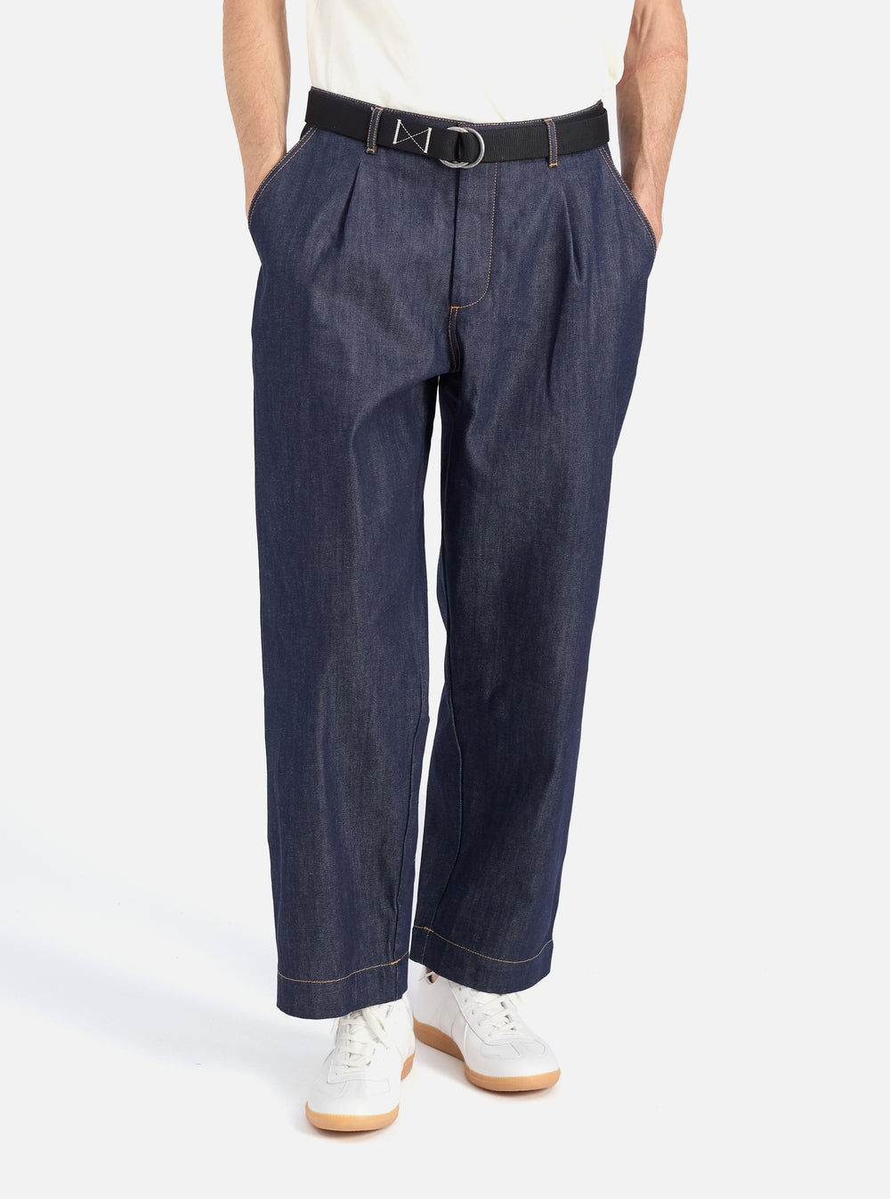 Model wears the Indigo 13oz Selvedge Denim Duke Pant.