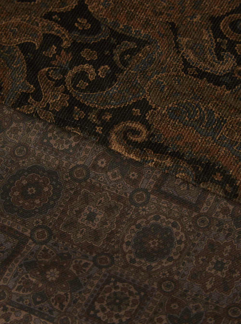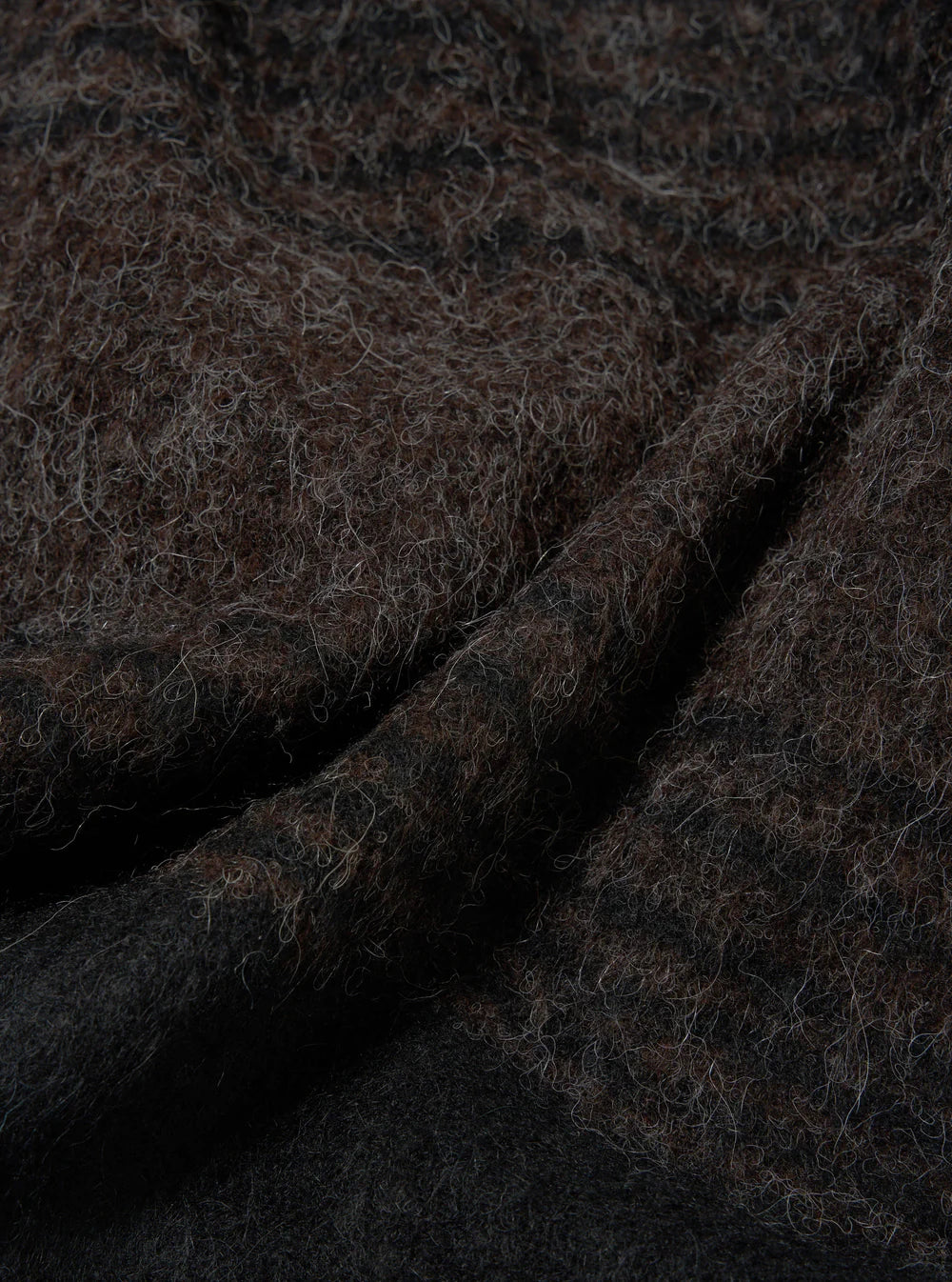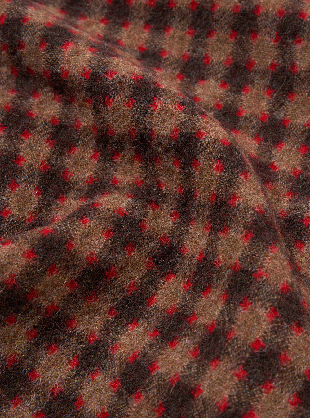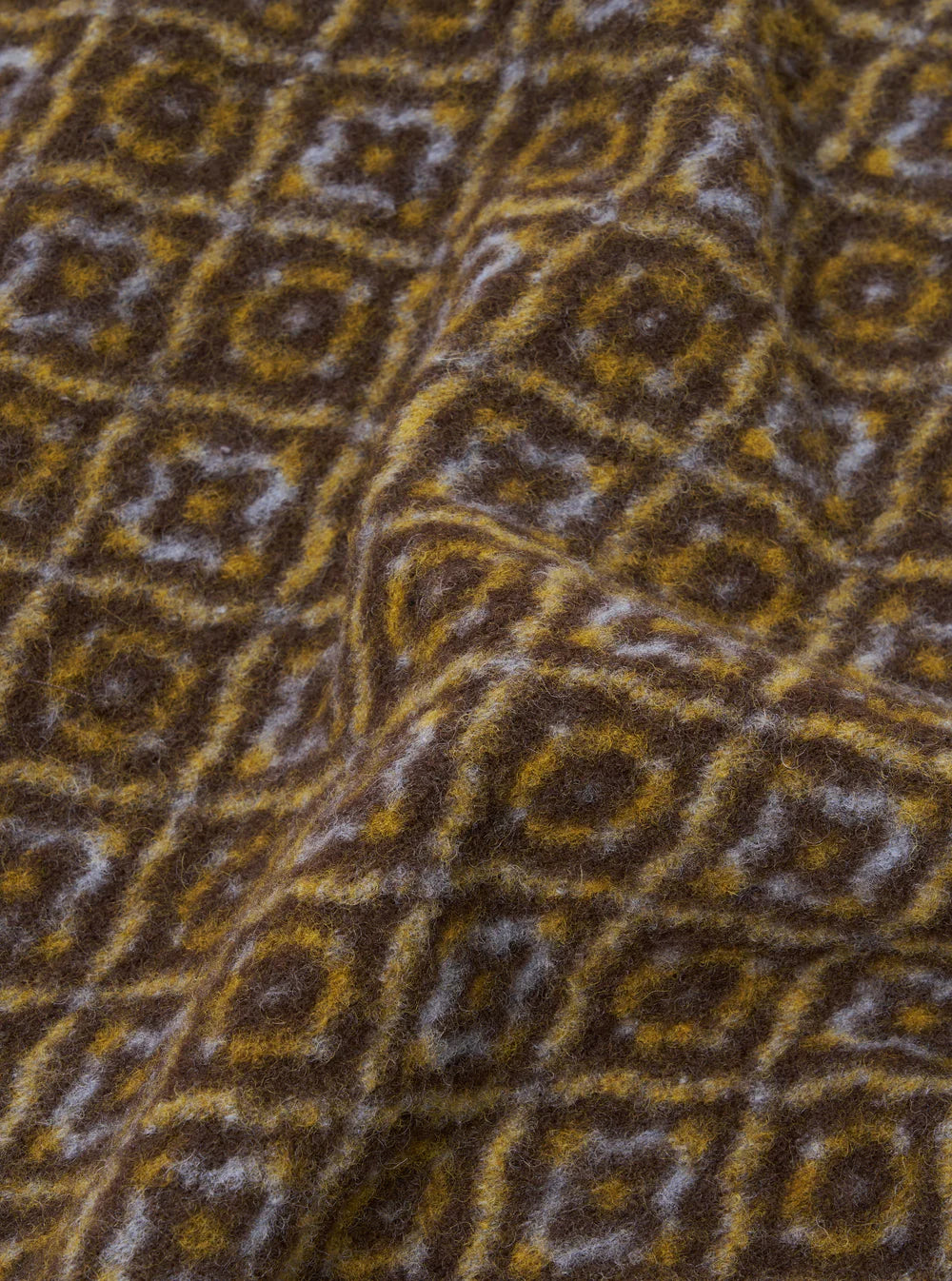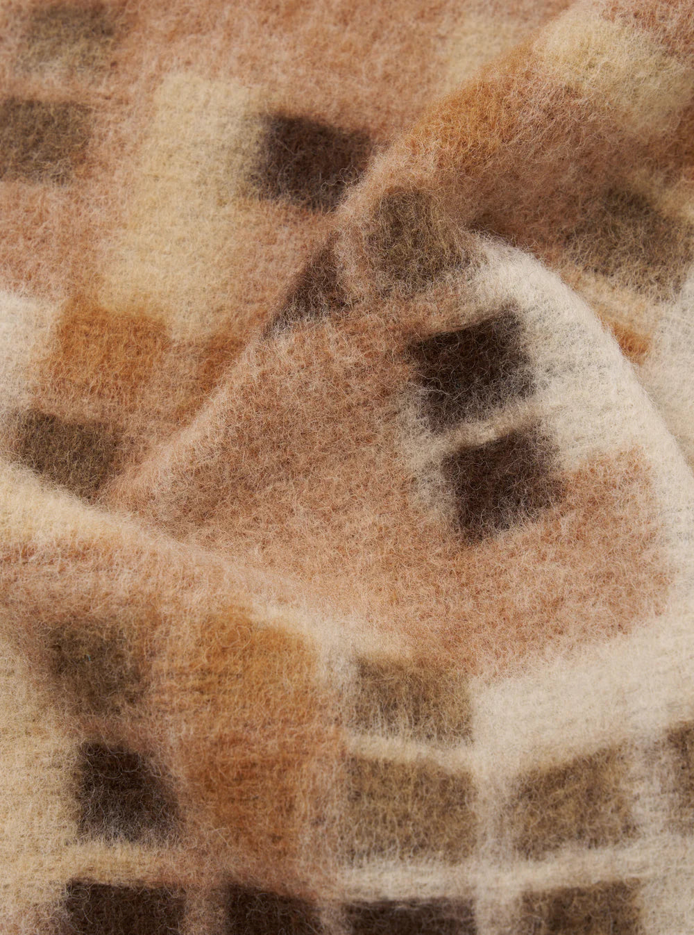 This mid-weight fleece has a warm, hairy textured hand-feel. Patterned with a brown mosaic square, it has more surface texture than our Wool Fleece.