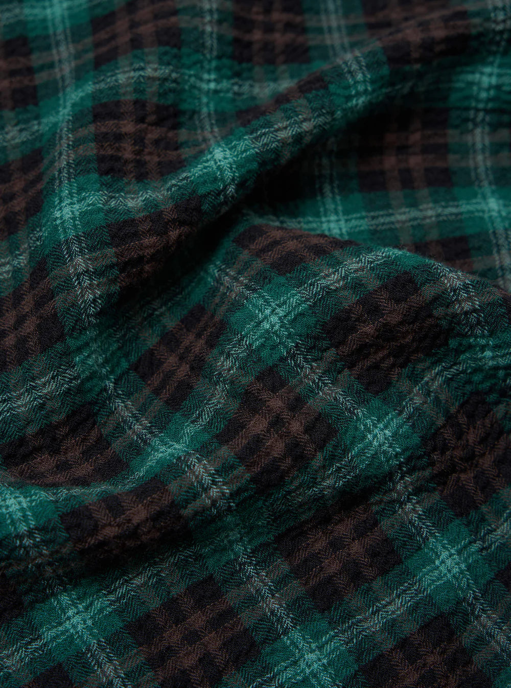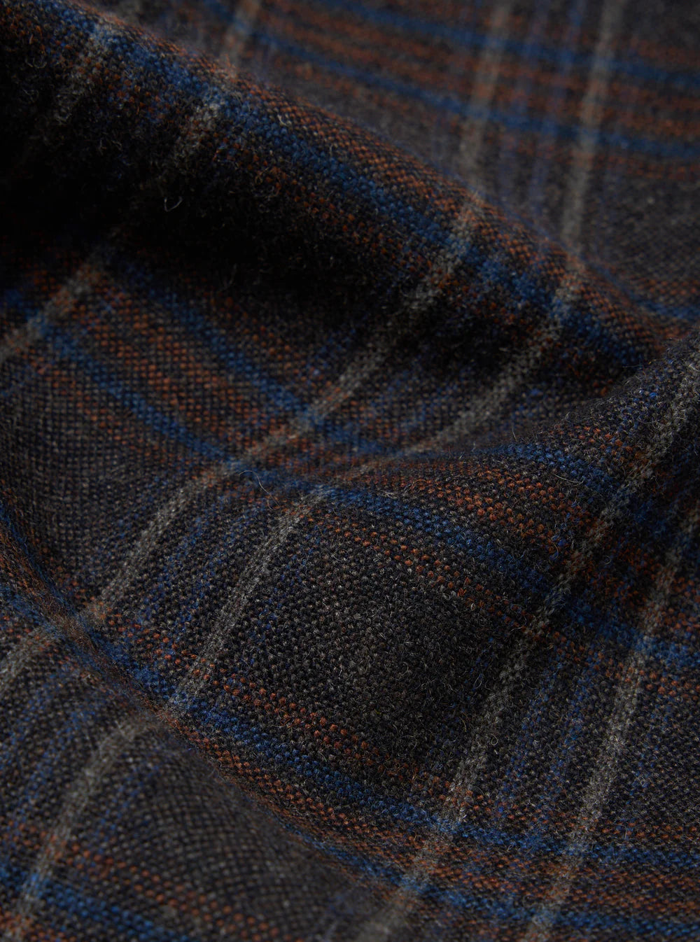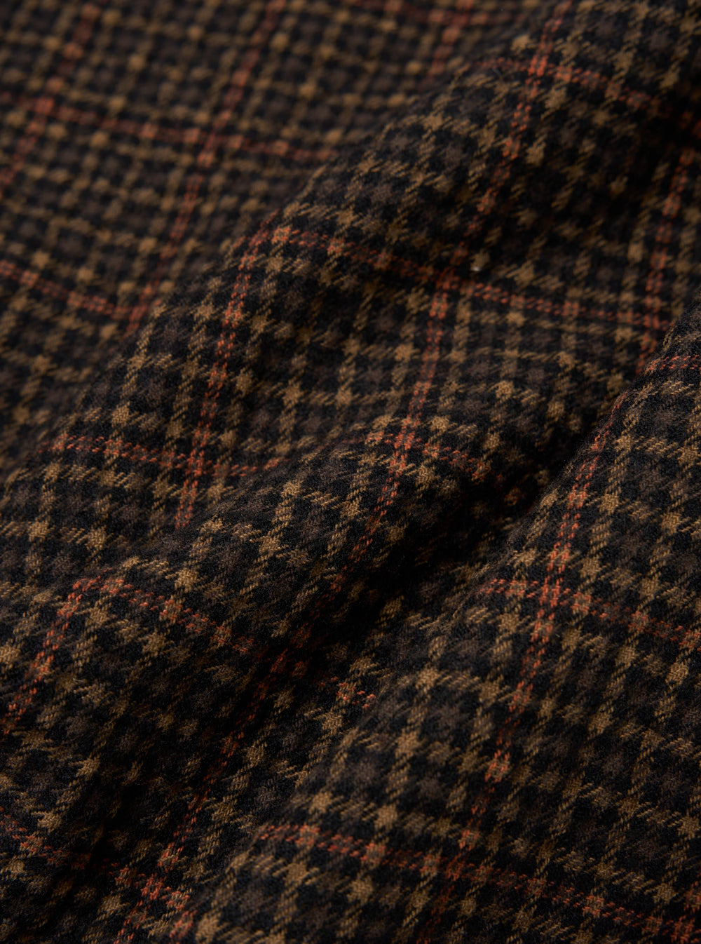 In a shadow check in a medium-weight shirting with a heavily brushed surface to create a soft hand feel.