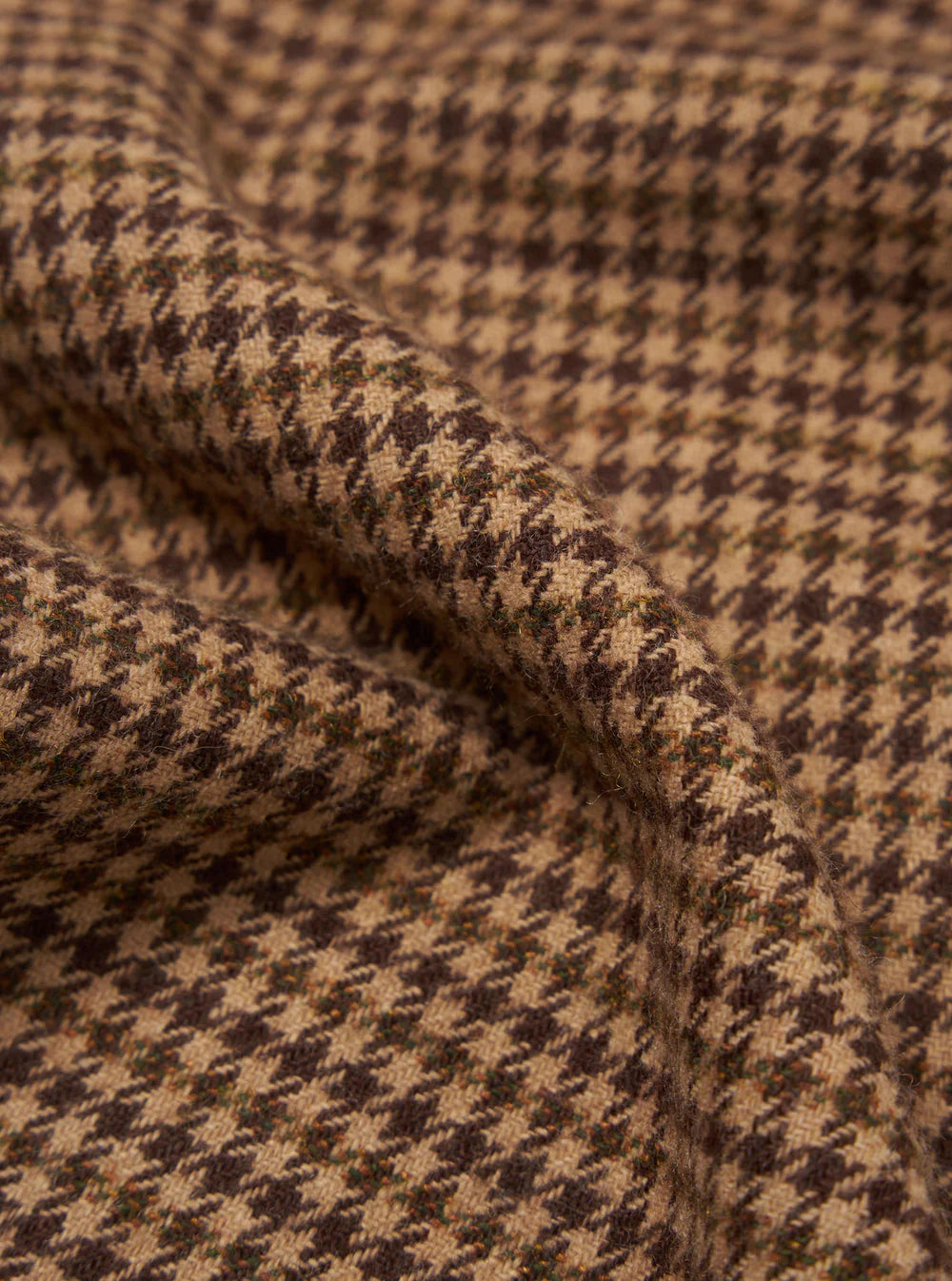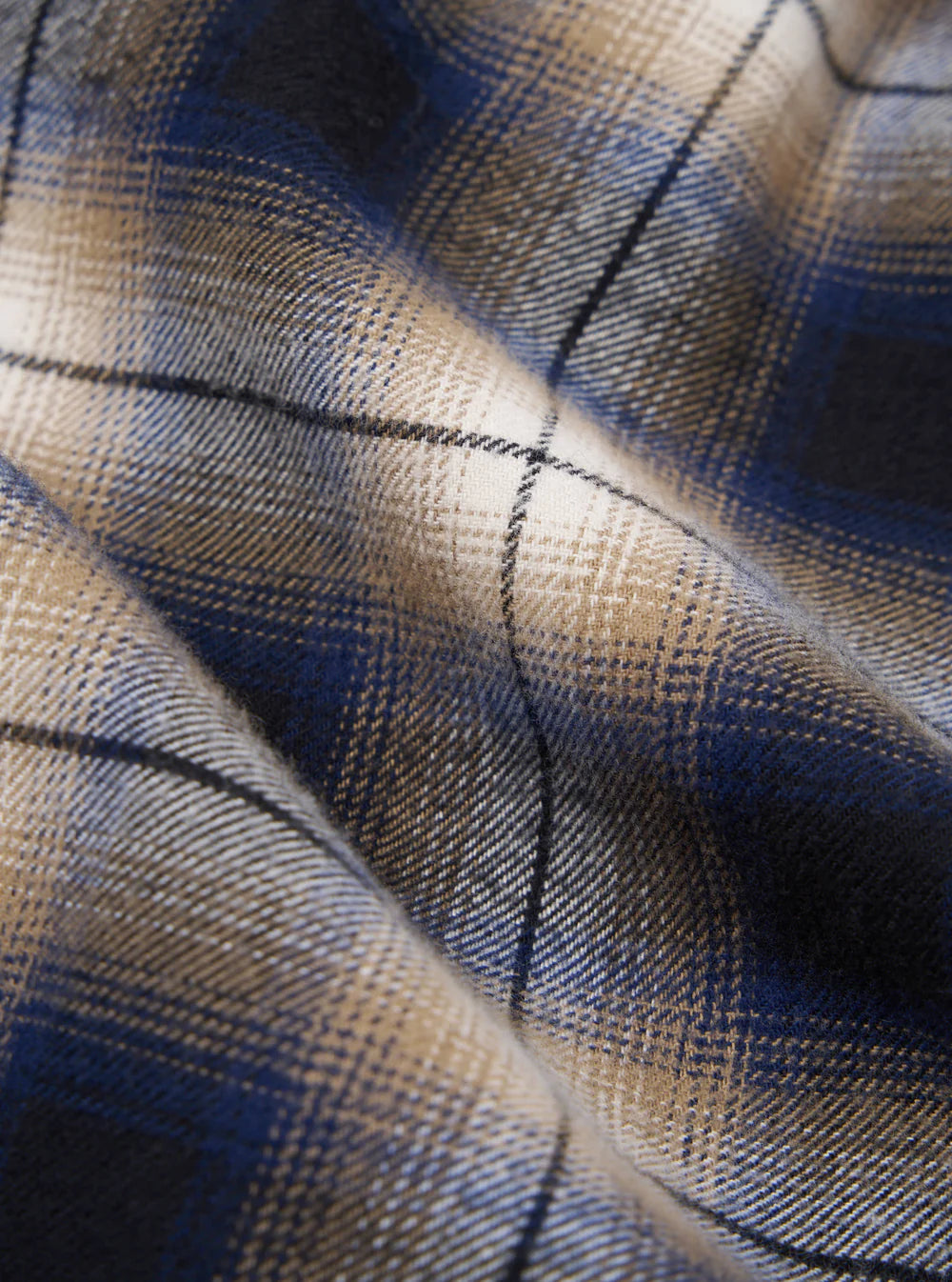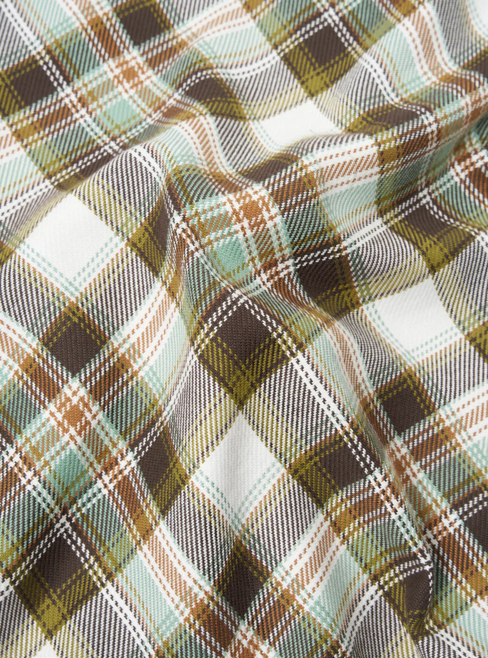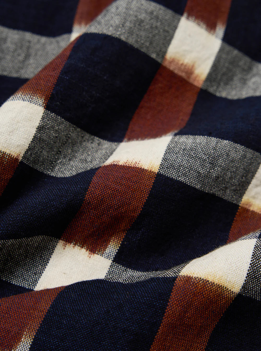 In a shadow check in a medium-weight shirting with a heavily brushed surface to create a soft hand feel.