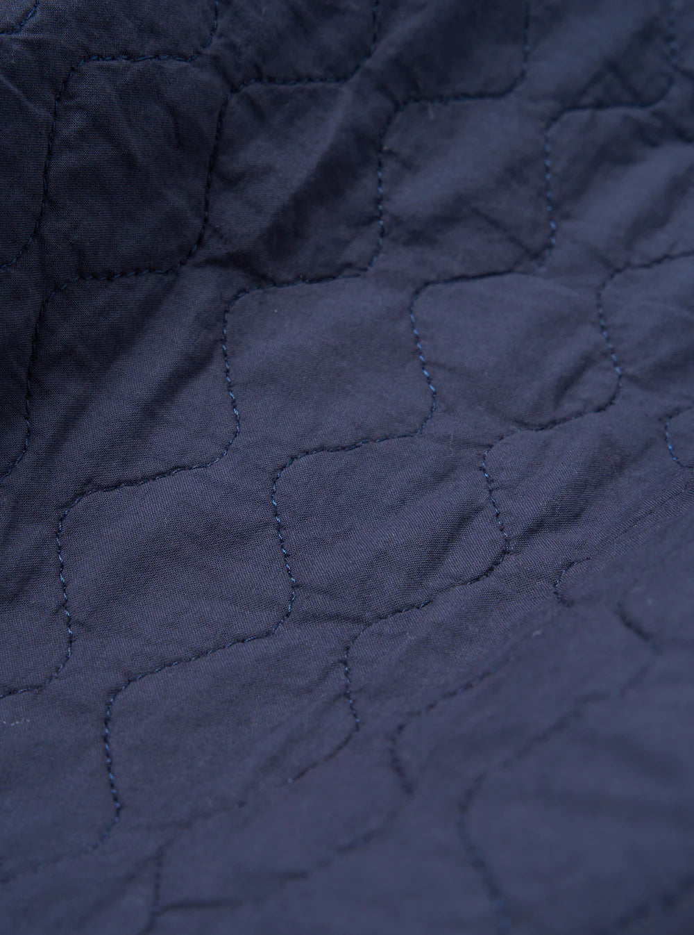 A cotton poplin style fabric with a smooth surface hand feel. Quilted in an onion pattern with a light-ish-weight polyester filling.