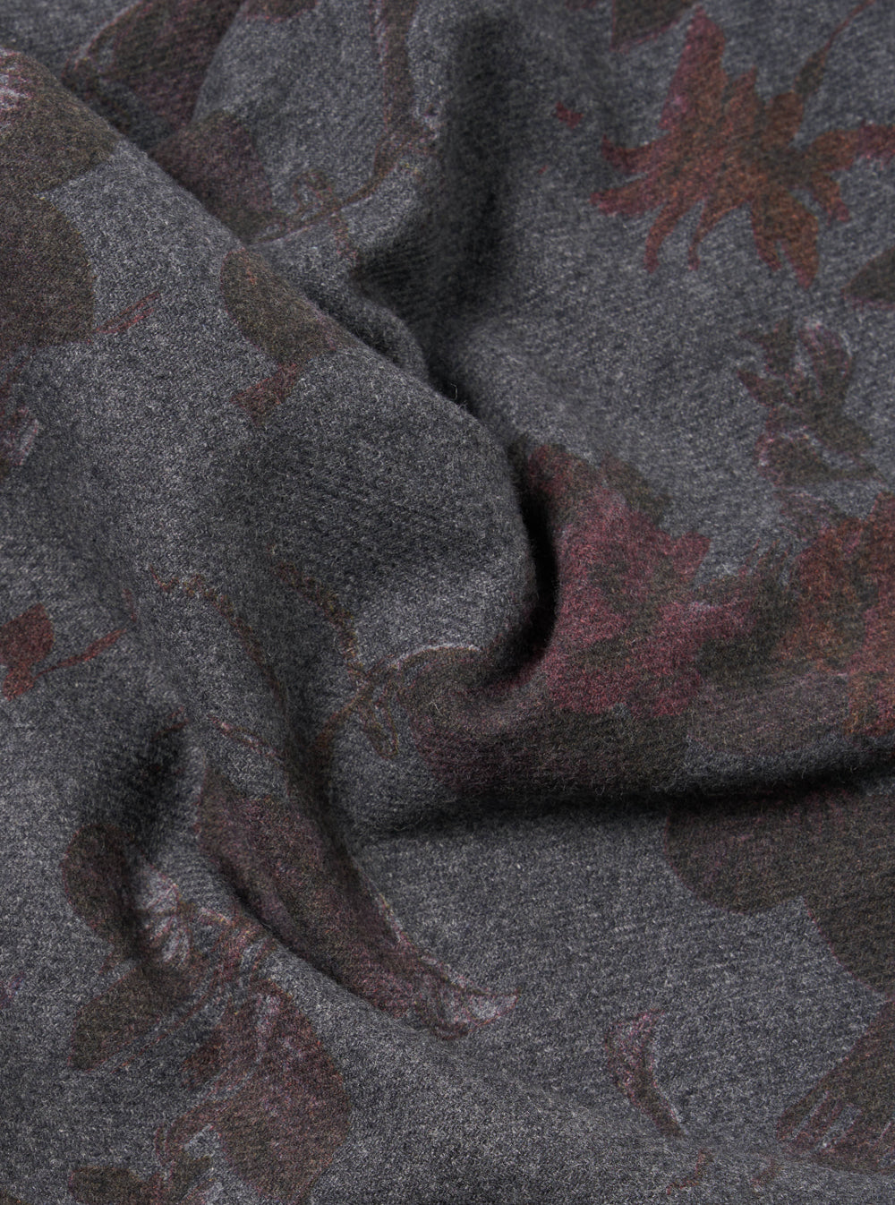 This wool blend, mid-weight fabric showcases a unique broken floral pattern, rotary-printed on a grey mélange Flannel. It adds a distinctive touch to your Autumn-Winter wardrobe.