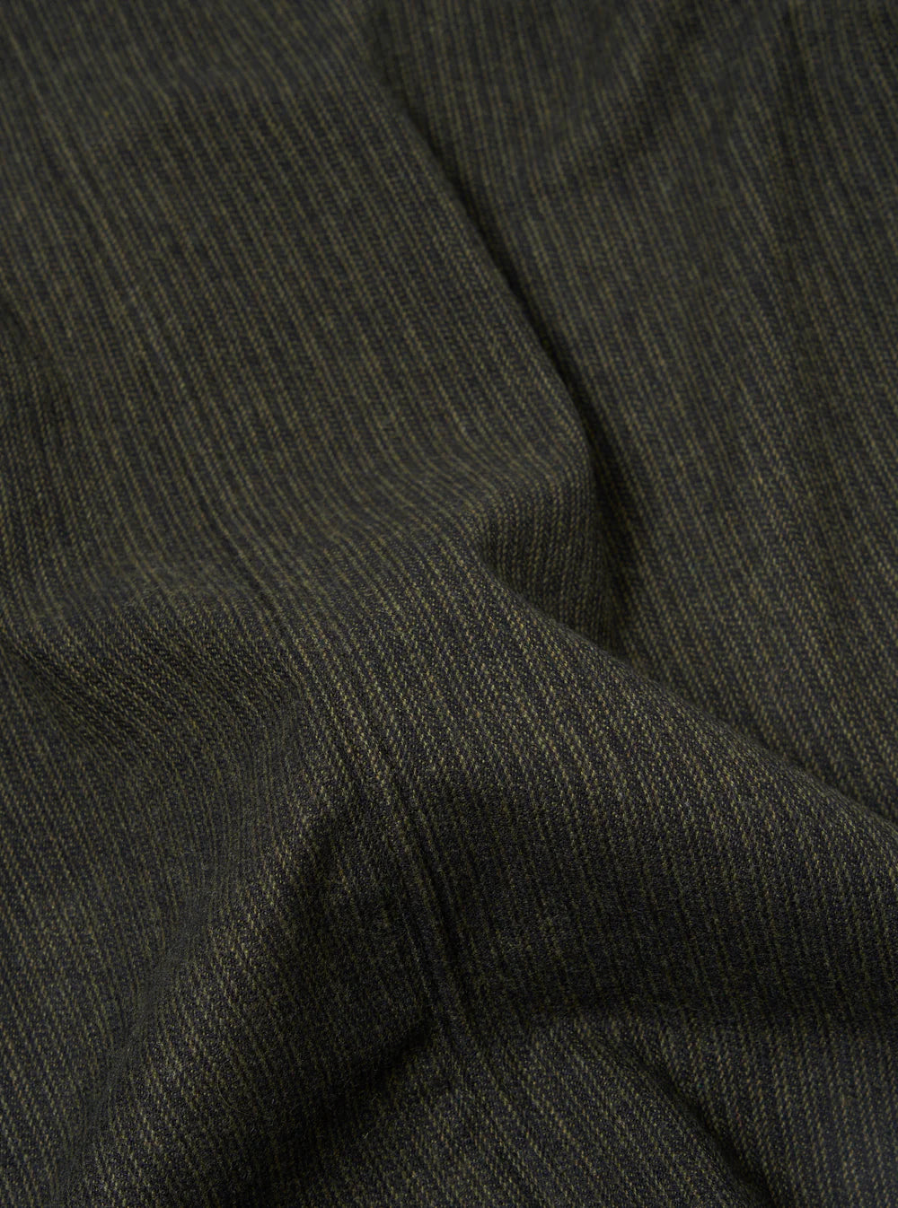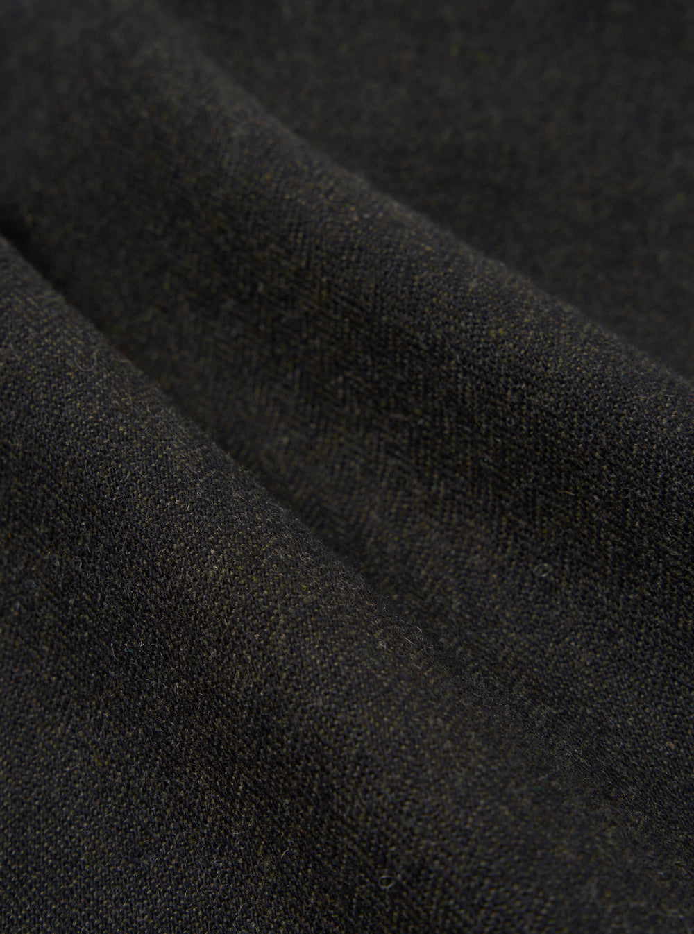 Black and olive yarns are woven together to create a striped herringbone pattern and texture for this mid-weight wool blend.