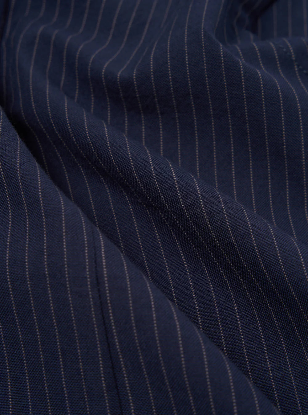 Our version of a classic pinstripe—a subtle stripe on navy cotton. It is lightweight and soft, thanks to its lightly brushed finish—not the classic crisp, clean feel cotton usually has. We think this is perfect for smart-casual suiting.