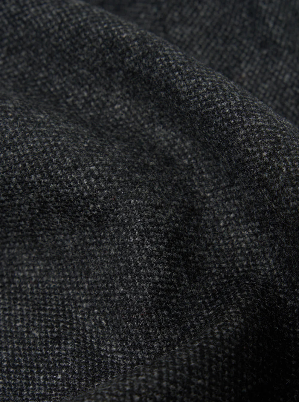 In a medium-weight suiting using a mix of recycled, tonal fibres in a birdseye weave creating a grey full of character and texture.