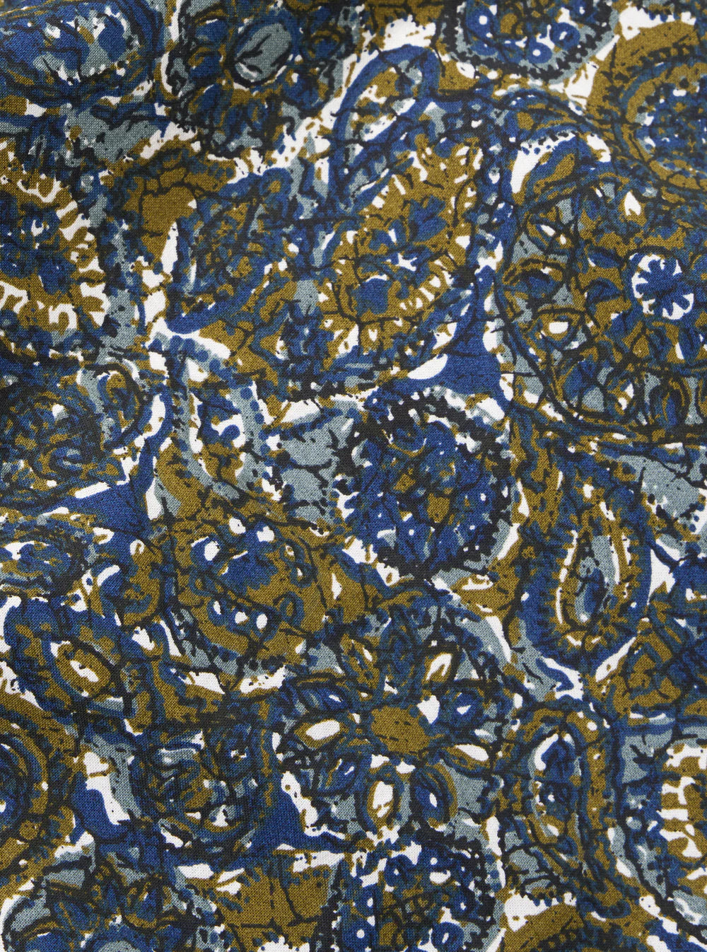 A plain weave substantial cotton shirting with a paisley-esq multi-colour print.