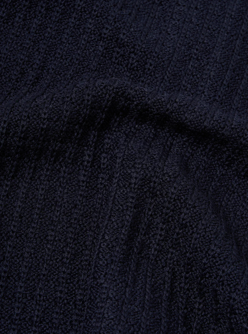 A five gauge plain knit in 100% Shetland Wool. To create a more textured look we have used the reverse of the knit.