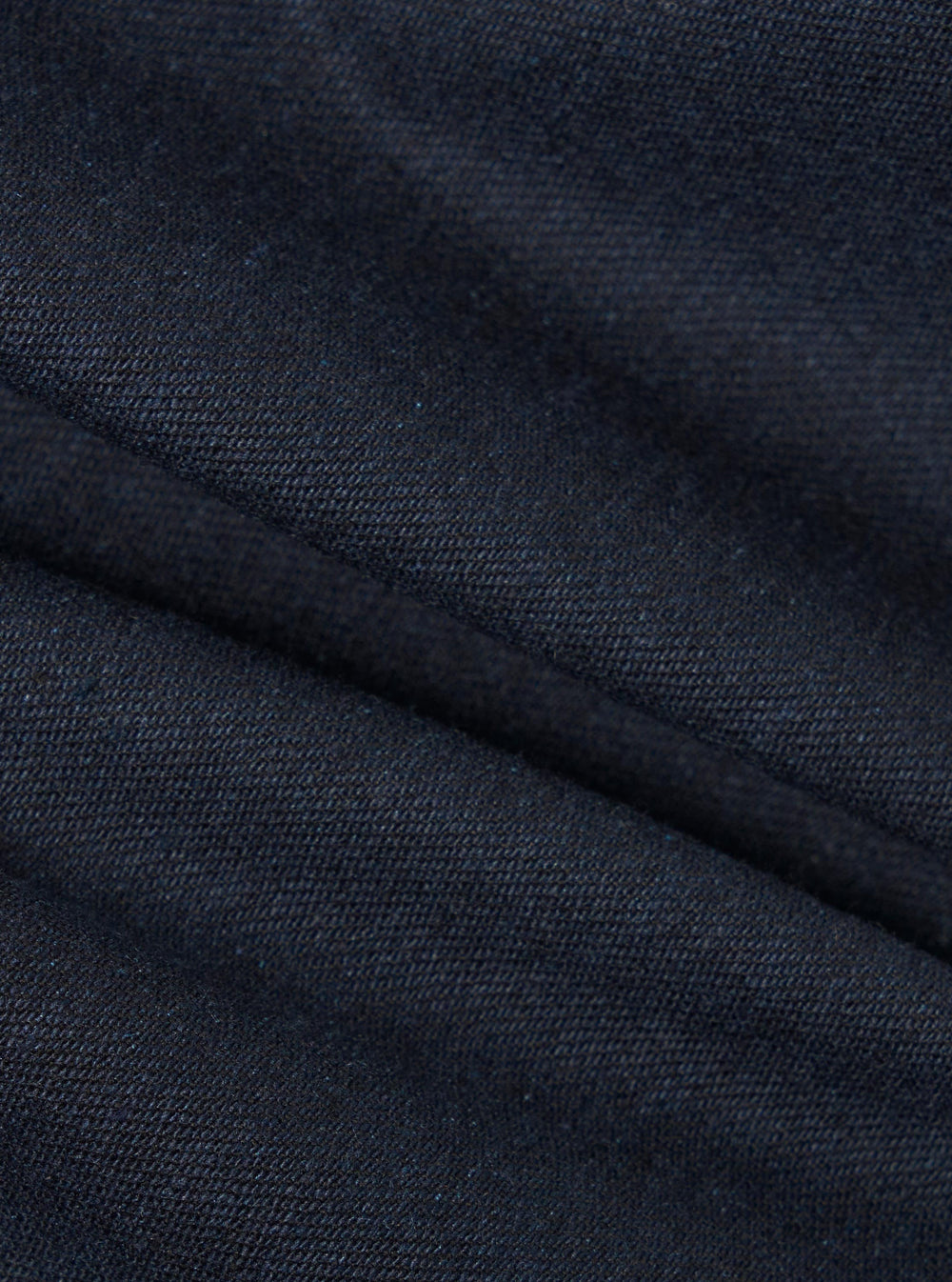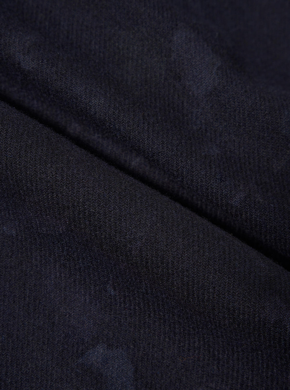 An Italian upcycled medium-weight navy twill weave flannel, with a subtle all-over exclusive flower print.