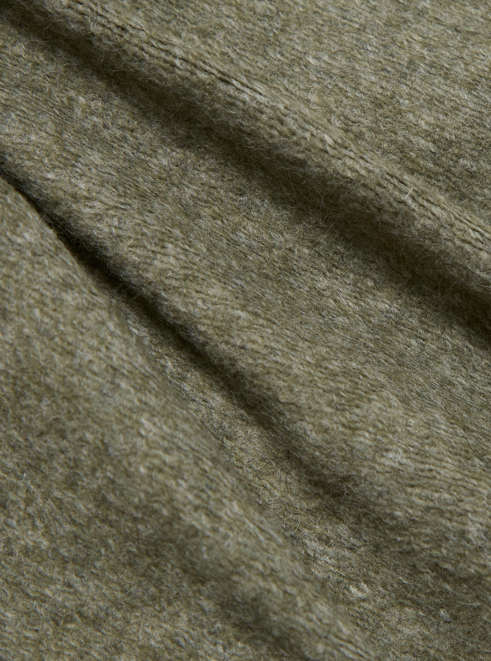 A soft 100% Shetland wool. A dual-sided Purl knit, here using the reverse for the loop texture.