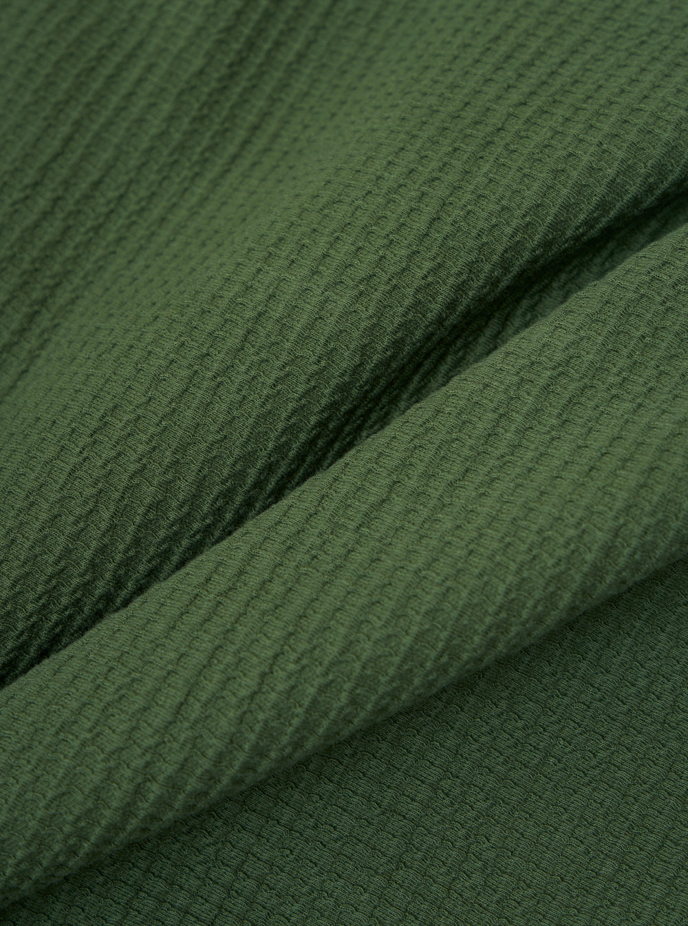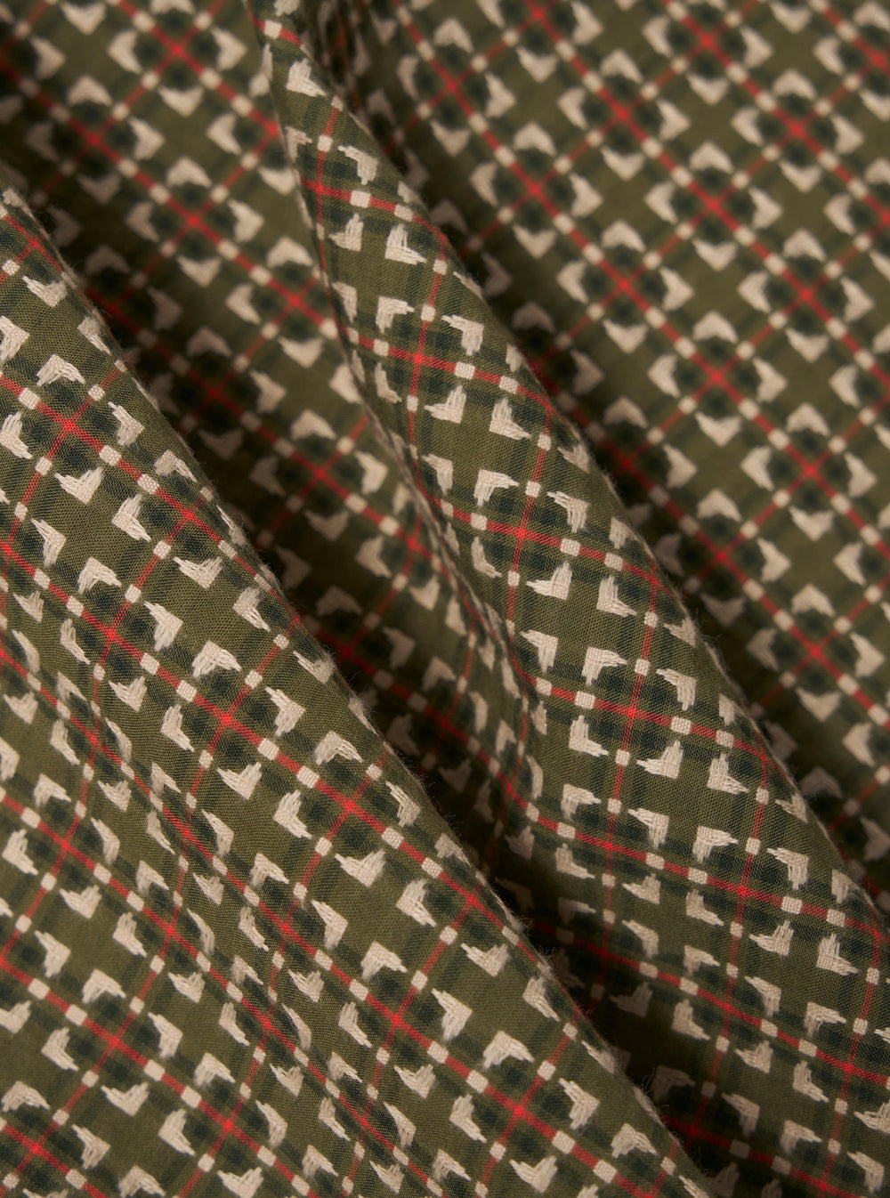 Woven in Portugal to our colour specification, this heavyweight overshirting fabric has a check pattern woven with coloured and raised threads, creating an intriguing surface mix of smooth and textured.