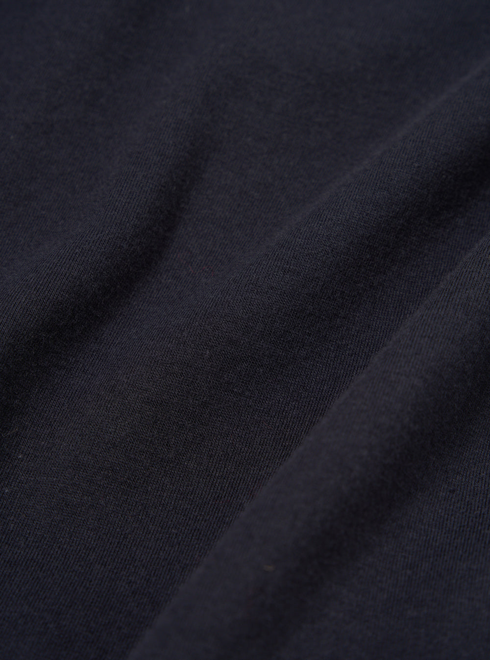 Our core jersey fabric—a lightweight 150-gram single jersey with a single rib hem, made exclusively of 100% cotton.